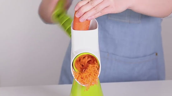 - Rotary Drum Grater is a simple to use kitchen tool to help you prepare food quickly and in various styles without hassle.